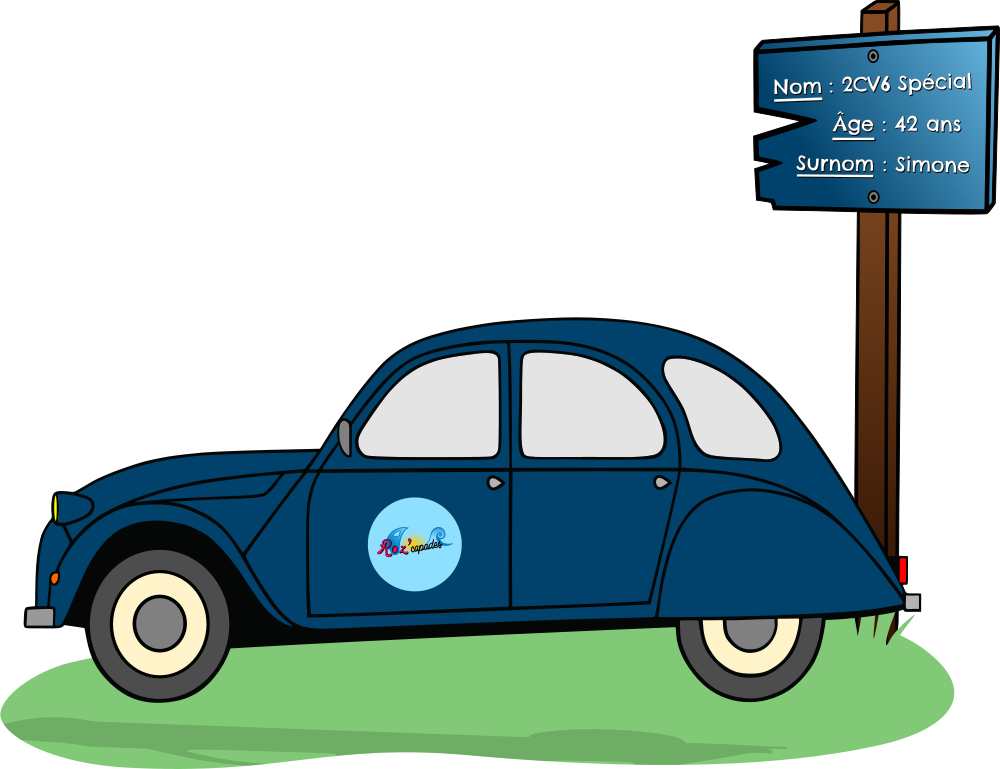 Née en 1983, Simone (la 2CV) va vous bercer tout au long de votre balade touristique. Son dernier bilan de santé est excellent car Simone a été restaurée intégralement entre 2024 et 2025. Et comme elle a subi une “métallisation”, elle peut rouler par tous les temps !